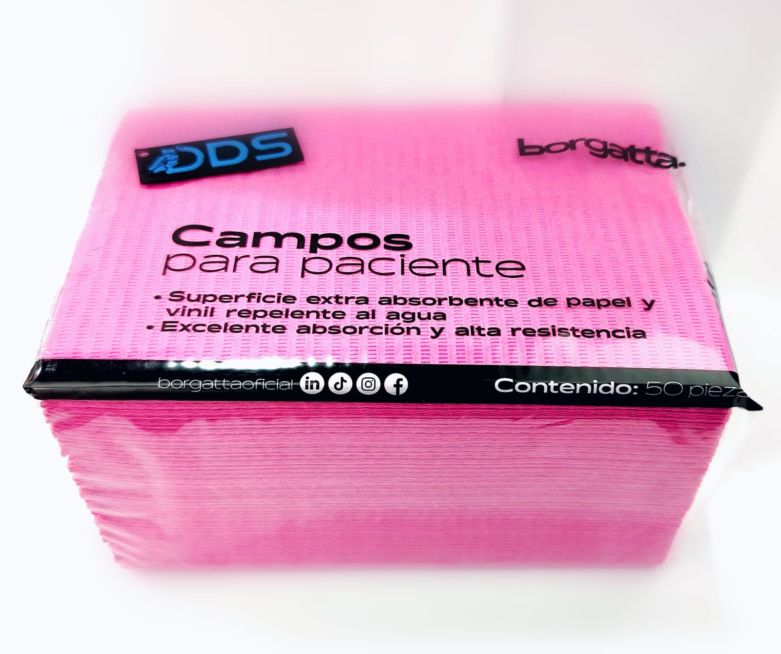 Presentación de 50 piezas en color rosa, ideal para mantener la zona de trabajo limpia y aislada durante procedimientos odontológicos. Facilita la higiene, la precisión y la organización en tratamientos dentales, ofreciendo comodidad tanto para el dentista como para el paciente.